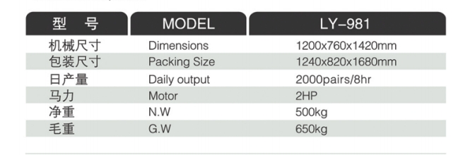1、本機使用于后跟高度180mm以下的一般中底及軟中底鞋結幫之用。