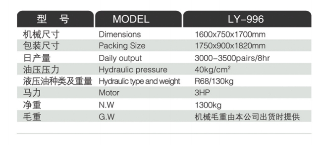 1、本機(jī)采用全油壓系統(tǒng)設(shè)計,適用于龍船底運動鞋及休閑鞋的外底壓著,壓底、壓邊及壓前后,可以一次完成或個別完成,出力大,粘合牢固,壓著均勻。是制鞋業(yè)不可缺少的自動化萬能壓底機(jī)械。